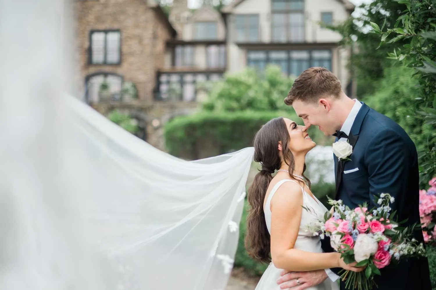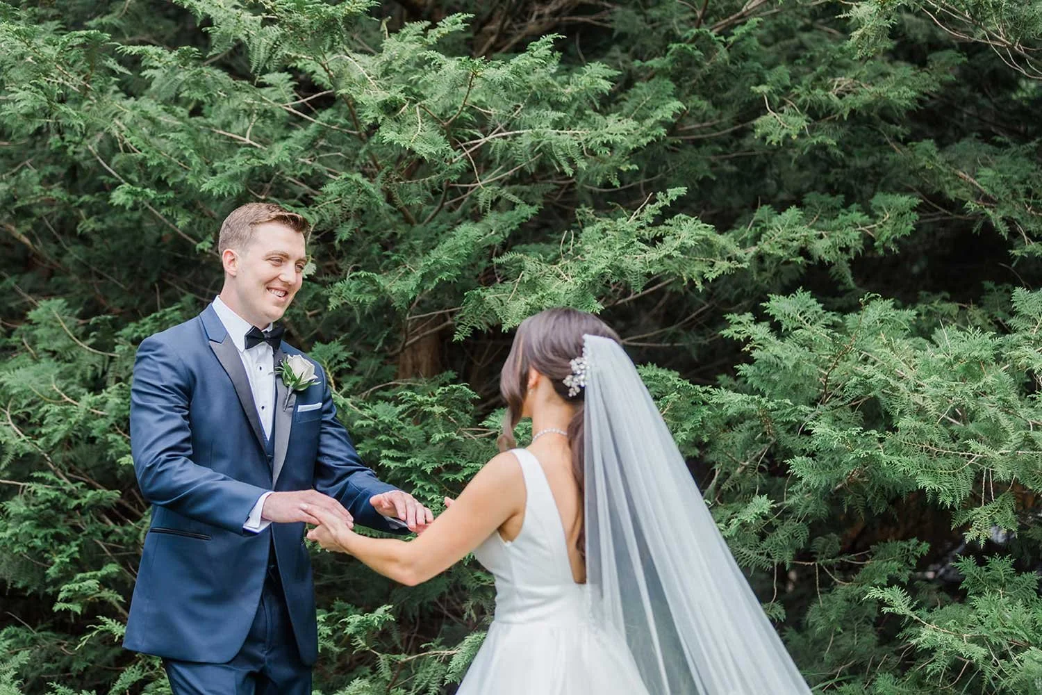 The bride, Cassidy, opted to have her bridesmaids wear this dreamy sky blue and kept their florals white and neutral. Her maid of honor’s bouquet had the smallest pop of pink and Cassidy’s bouquet was full of perfectly pink blooms. It worked perfectly with the Summer landscaping Lake House Inn already had in place for the season.